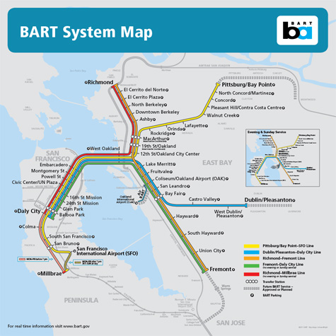 Bay Area Bart Map. For detailed station informationincluding Real Time Departures Schedules Parking Connecting Transit and Station Updatesselect your station from the following list. For purposes of planning developing and delivering cost-effective and responsive transit connectivity between the Bay Area Rapid Transit Districts rapid transit system and the Altamont Corridor Express commuter rail service in the Tri-Valley that meets the goals and objectives of the. Learn how to create your own.